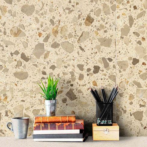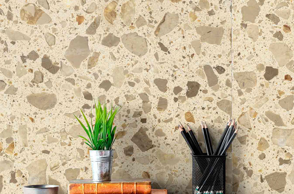 TERRAZZO, which is completely natural, is mixed with cement containing solid minerals such as marble, granite, gravel (natural aggregate) and turned into blocks. After waiting for the socket time of the block, it is cut into a katrak machine and becomes a plate, after the required surface treatment and filling processes, it is smoothed with special polishing machines and finally polished. Terrazzo systems have the desired design power in architectural creativity with unlimited freedom of color and pattern. They are aesthetic. It can be easily applied to all kinds of surfaces. It has high resistance to physical impacts and chemical effects.